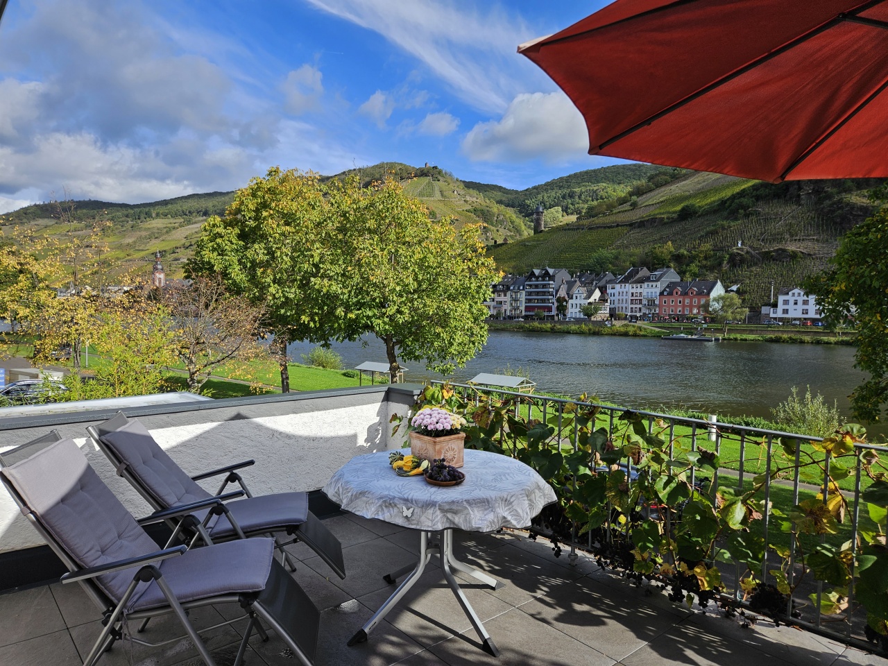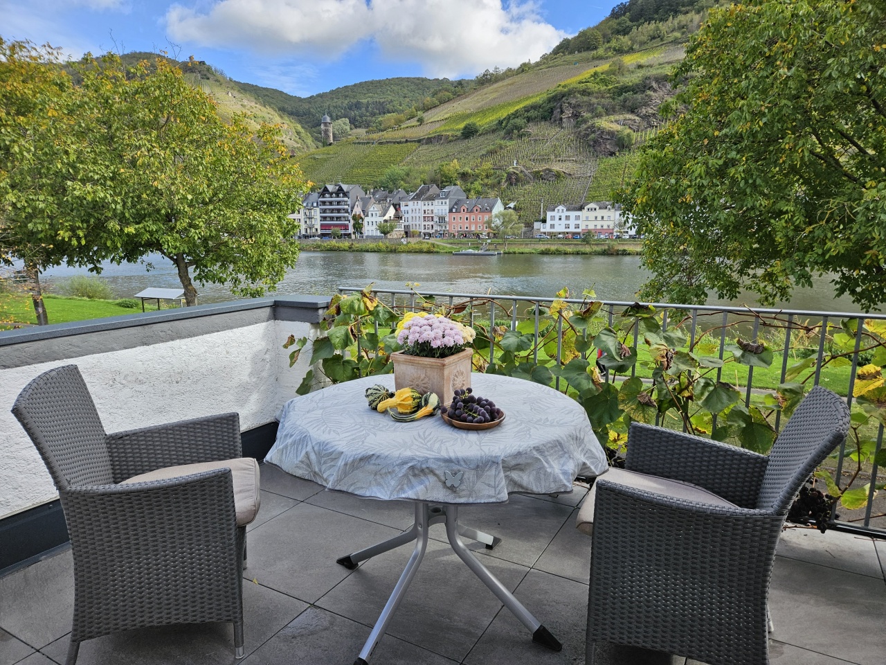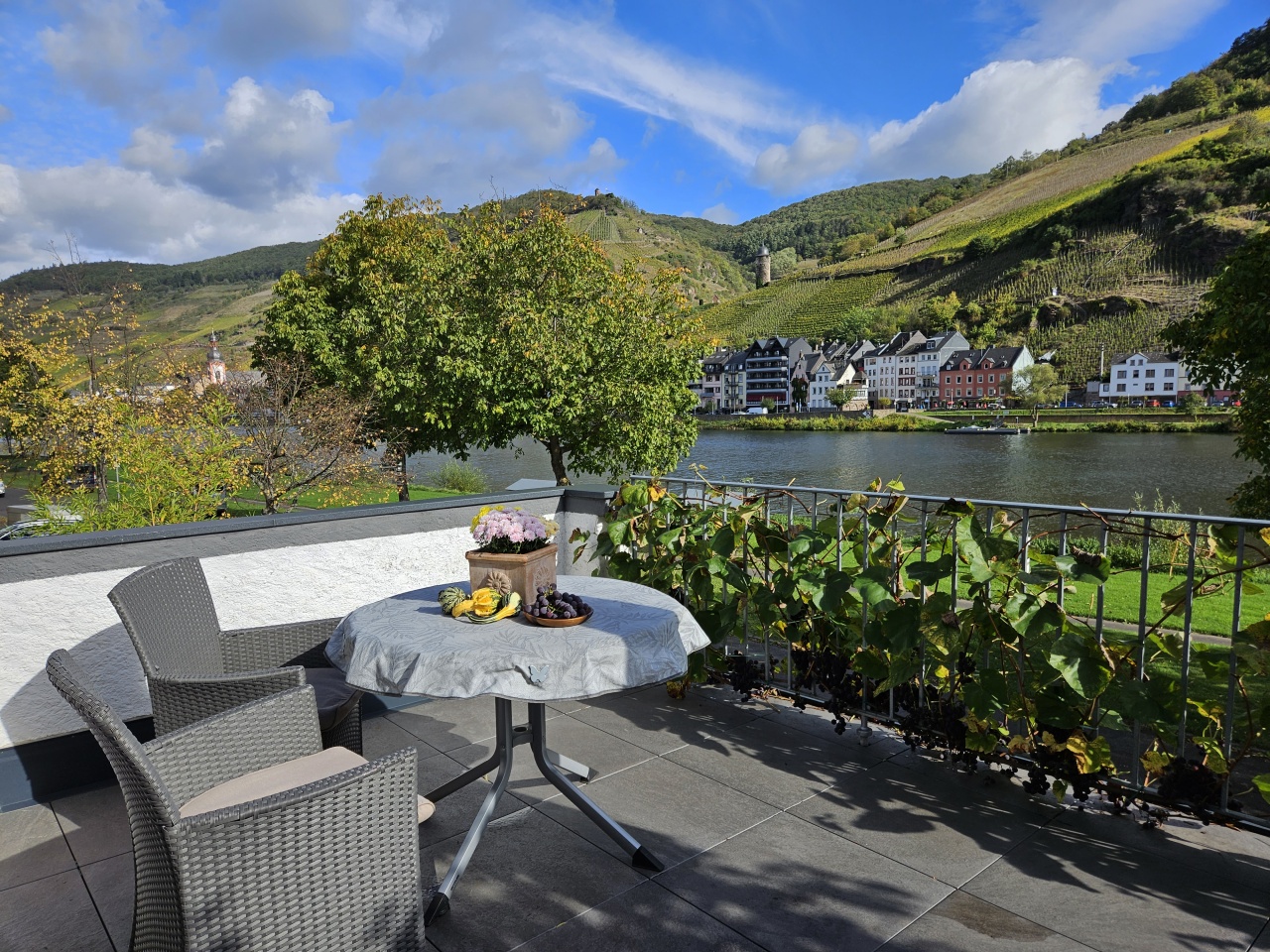 Genießen Sie Ihren Urlaub in einer stilvollen Ferienwohnung mit großzügigem Balkon und atemberaubendem Panorama-Blick auf die Mosel. Die modern ausgestattete Küche bietet alles, was Sie für entspannte Mahlzeiten benötigen: Ceranfeld, Mikrowelle, Kühlschrank mit Gefrierfach, Kaffeemaschine, Toaster und Wasserkocher. Der helle Wohn- und Schlafbereich, zur Moselseite gelegen, lädt mit einem komfortablen Doppelbett, zwei Relaxsesseln und einem Flachbild-Sat-TV (inkl. Blu-ray-Player) zum Entspannen ein.