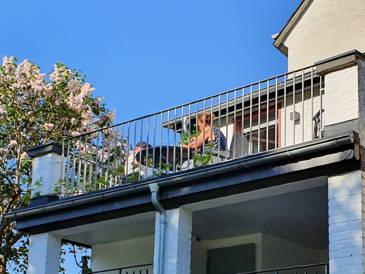 Der 20 m² große Balkon ist ein echtes Highlight – perfekt für ein Frühstück in der Morgensonne oder zum Sonnenbaden auf den bereitgestellten Liegestühlen. Eine Sitzgarnitur und Sonnenschutz sorgen für Komfort.