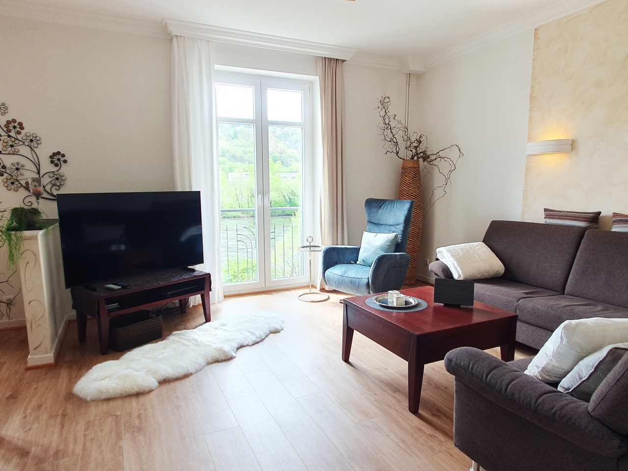 Erleben Sie einen unvergesslichen Urlaub in traumhafter Mosellage ganz nah am Wasser. Luxus-Ferienwohnungen im stilvollen Ambiente und hohem Wohnkomfort, so richtig zum Wohlfühlen, mit geschütztem Balkon für 2-4 Personen. Die Fenster zur Moselseite (1 Schlafzimmer und Wohnraum) führen in beiden Wohnungen bis zum Boden (französischer Balkon). 1-2 Schlafzimmer mit großen Betten ohne Fußteil. Moderne Küche mit Blick in die Weinberge.