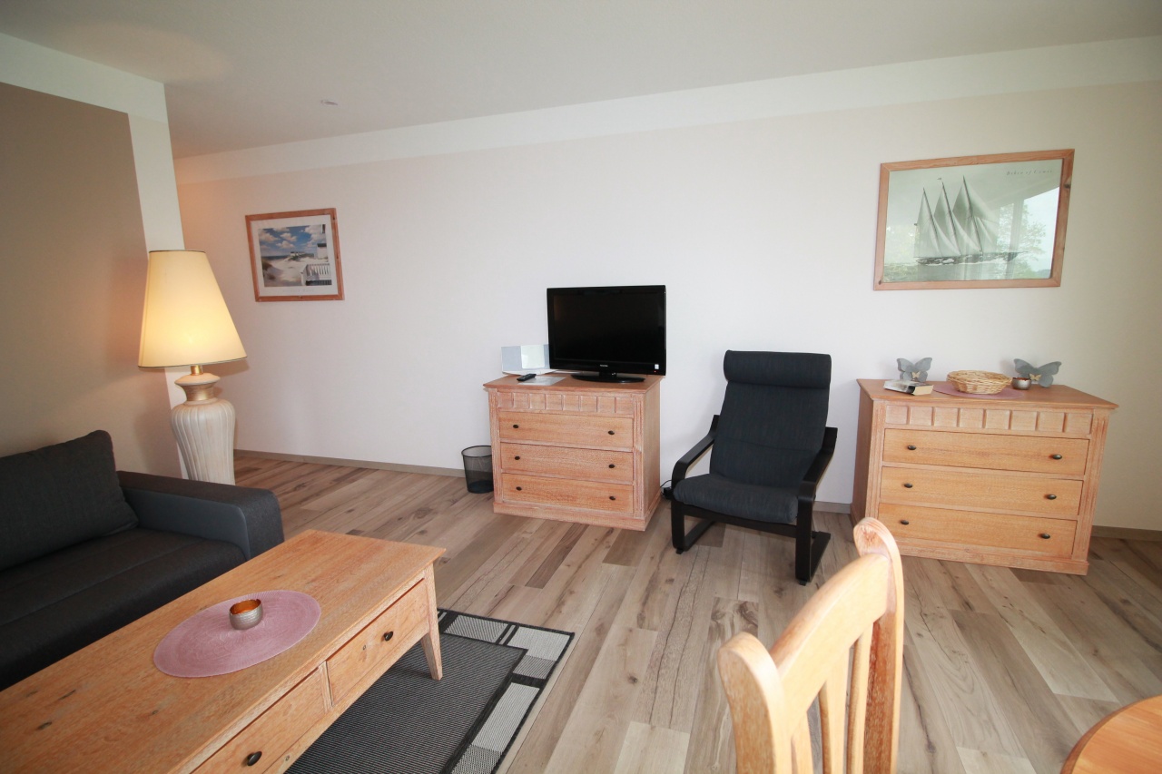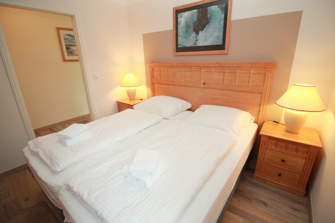 Es verfügt über ein Schlafzimmer mit Doppelbett sowie ein Wohnzimmer mit Schlafcouch.