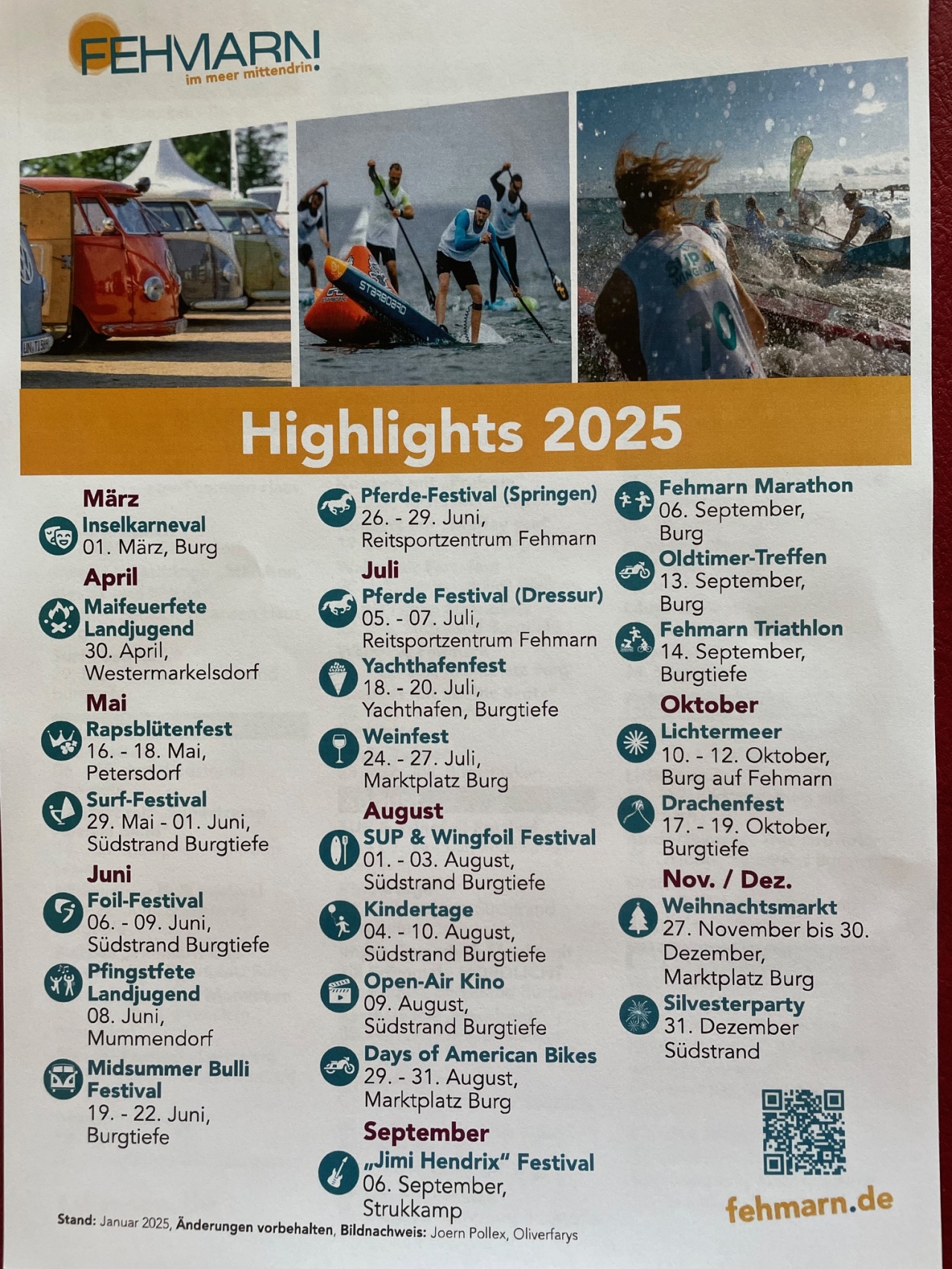 Die feste Anbindung zum Festland über die Fehmarnsundbrücke ermöglicht zeitsparend Ausflüge auf das Festland: Lübeck, Holsteinische Schweiz, Kiel, Hamburg, Wismar, Schwerin, Dänemark per Schiff etc.