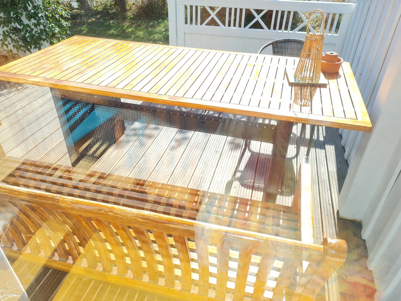 Dort befindet sich auch die großzügige nicht einsehbare teilüberdachte Terrasse, die mit Gartenmöbeln ausgestattet ist und zum Verweilen einlädt.