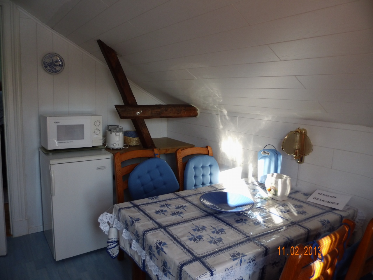 Die Wohnung besteht aus einem Wohnzimmer (Sat-TV, Stereoanlage, Sofa / Sessel, Tisch, Ausziehbett), einem Schlafzimmer (Doppelbett), einem Vollbad (WC, Waschbecken, Badewanne mit Brause) und einer voll ausgestatteten Küche (Kühlschrank, Herd, Backofen, Kaffeemaschine, Mikrowelle, Frühstücktisch mit Stühlen). Auf Anfrage kann eine dritte Person, gegen Gebühr, im Wohnzimmer auf einem ausklappbarem Bett schlafen.