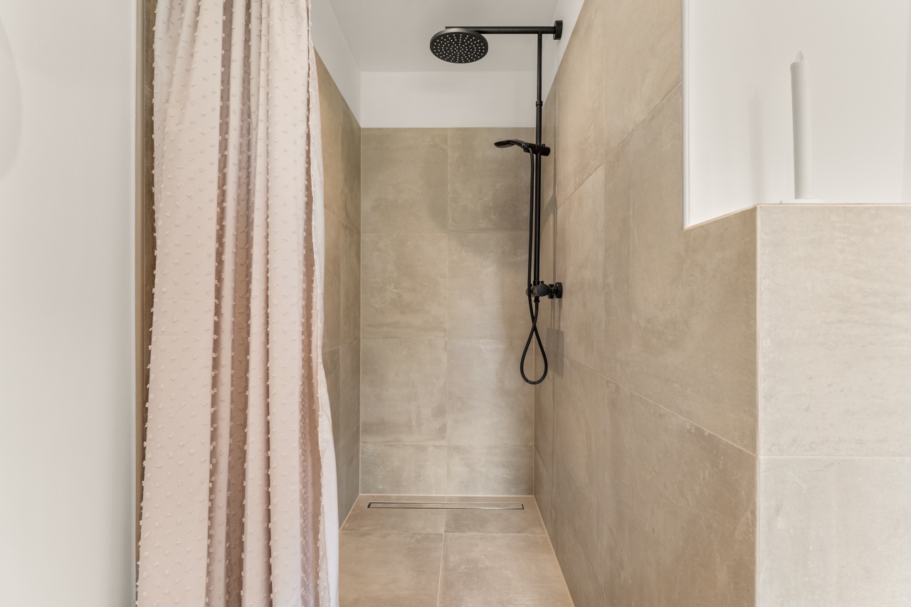 Das Bad ist ausgestattet mit einer begehbaren Dusche, direkt nebenan ist das separate Gästeklo.