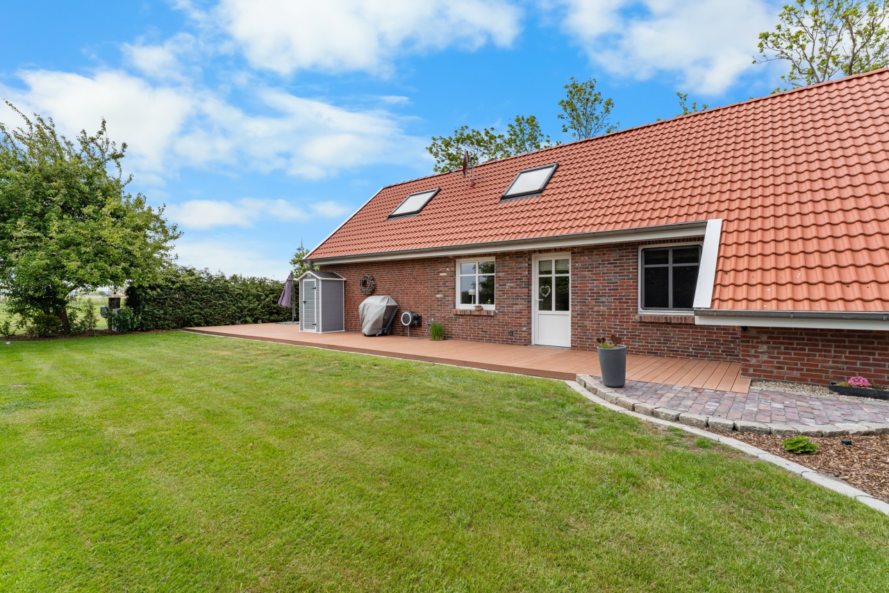 Entstanden ist nun auf einem 9000 qm Grundstück eine Oase der Ruhe mit Blick zum alten Deich hinter Westerbur.